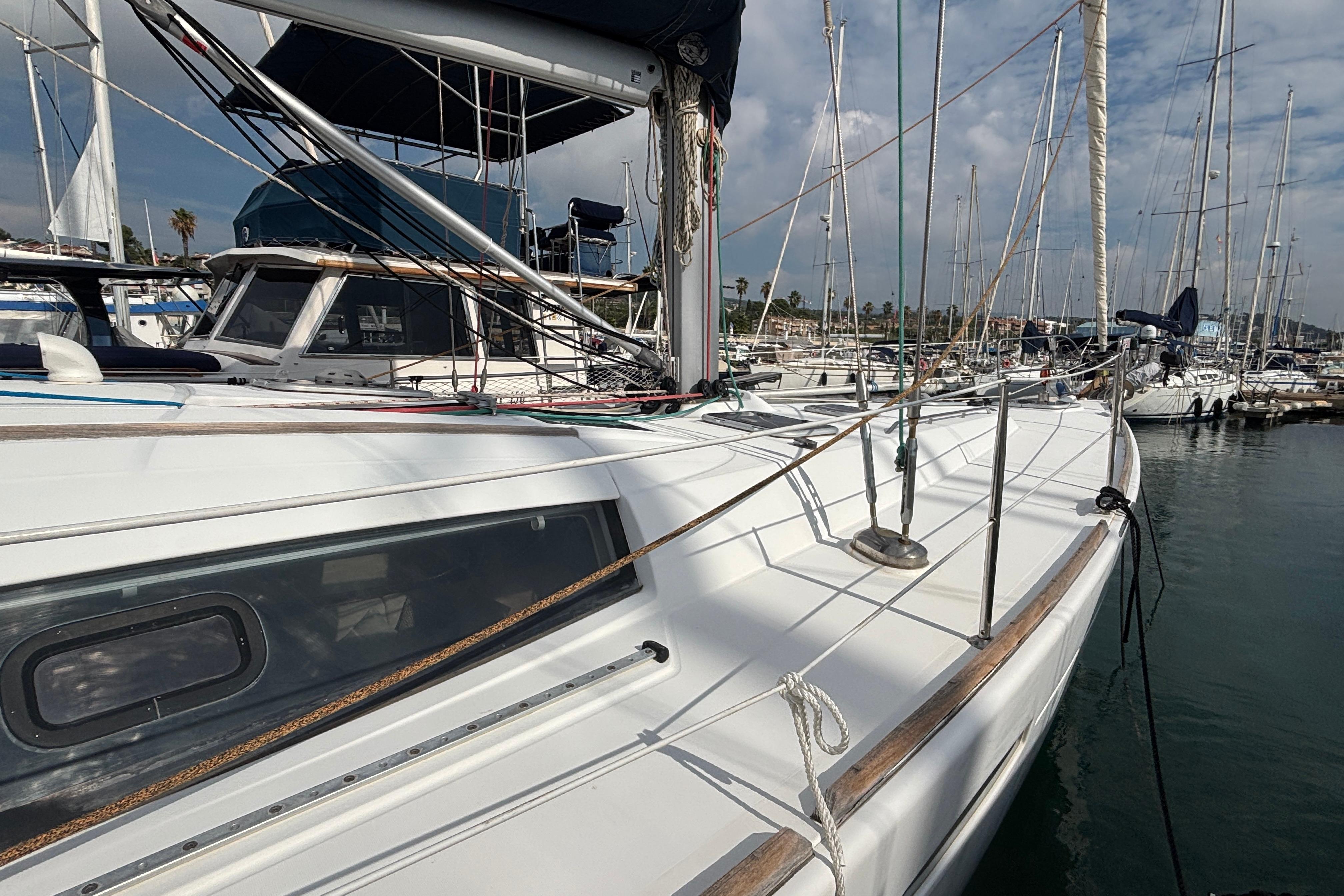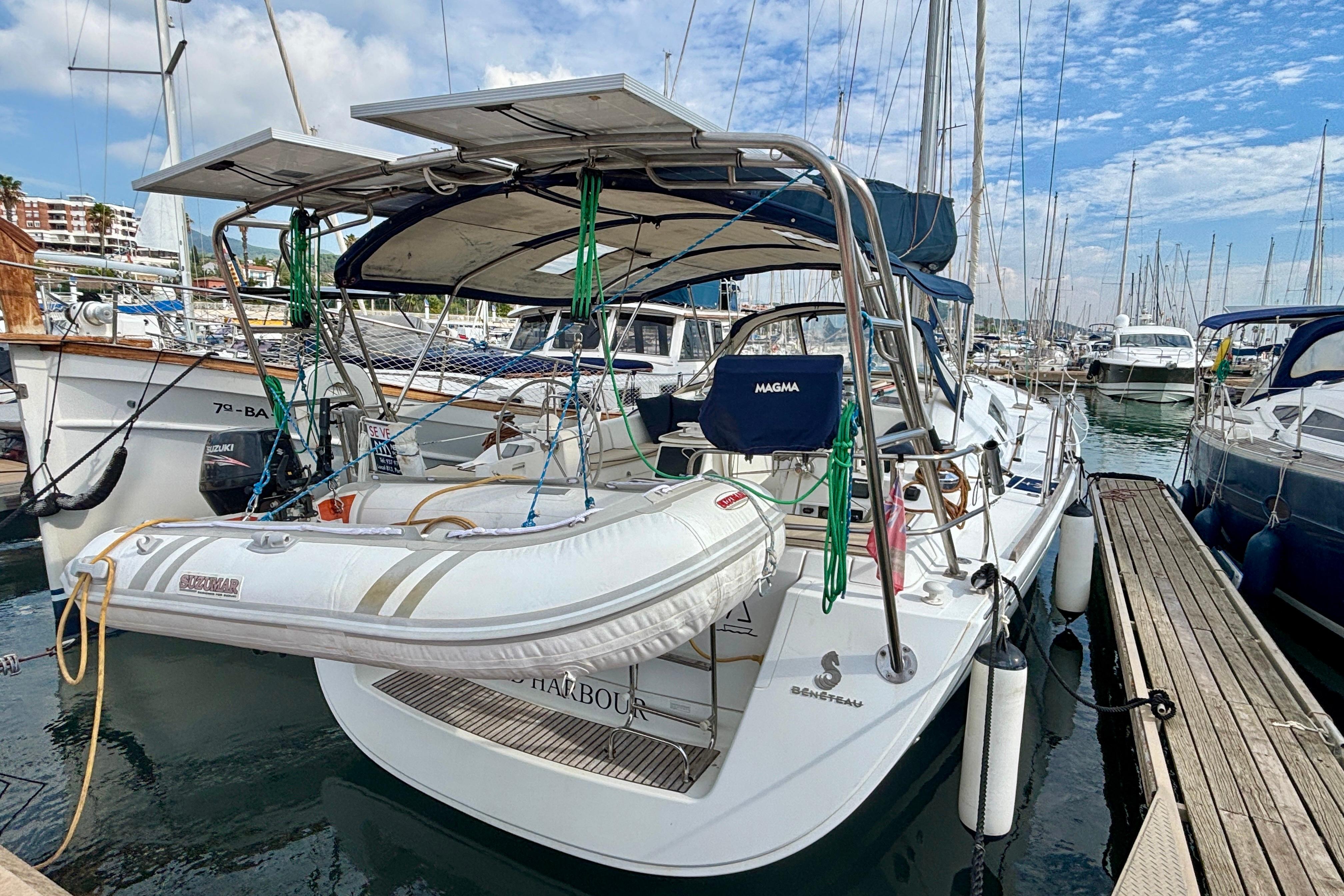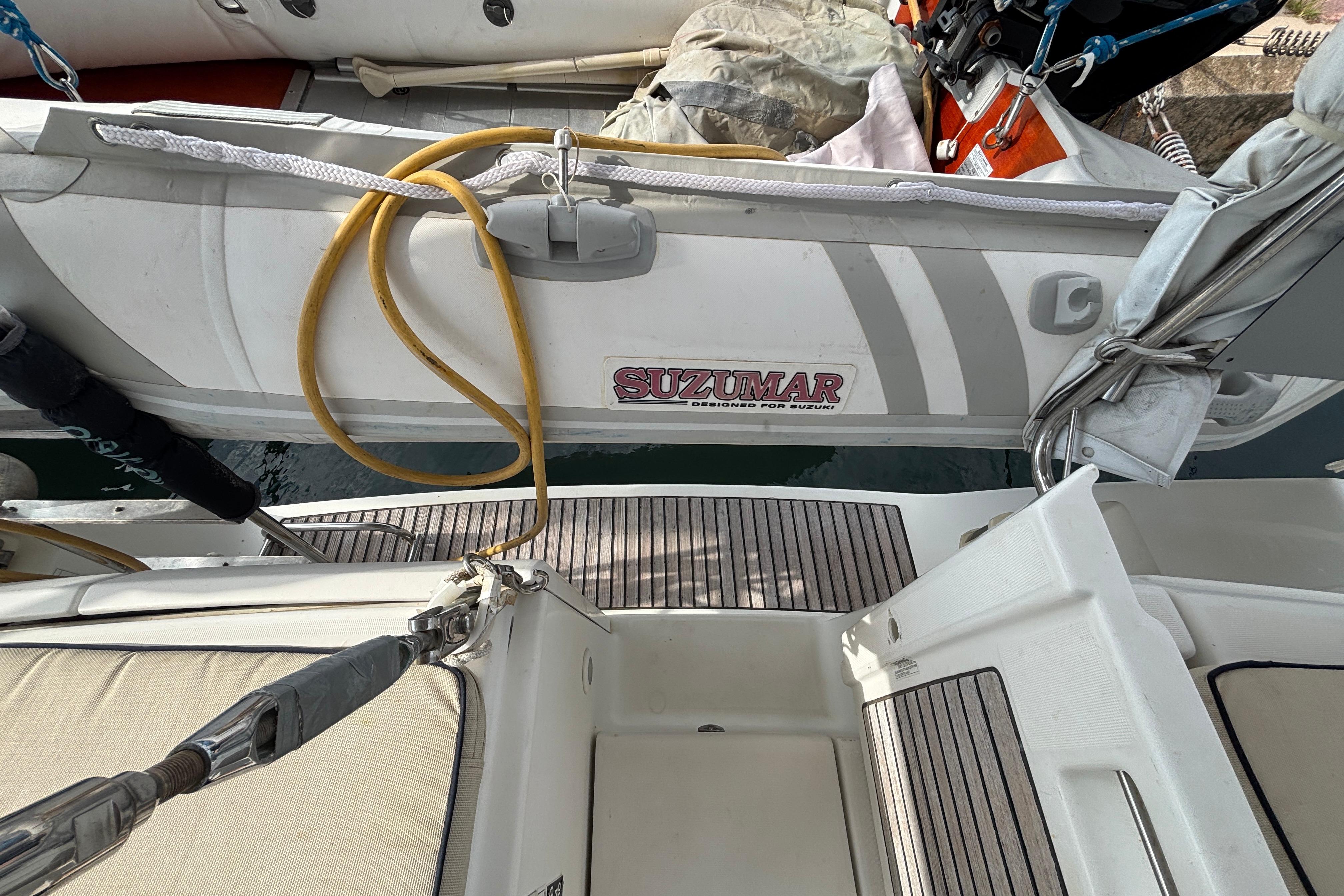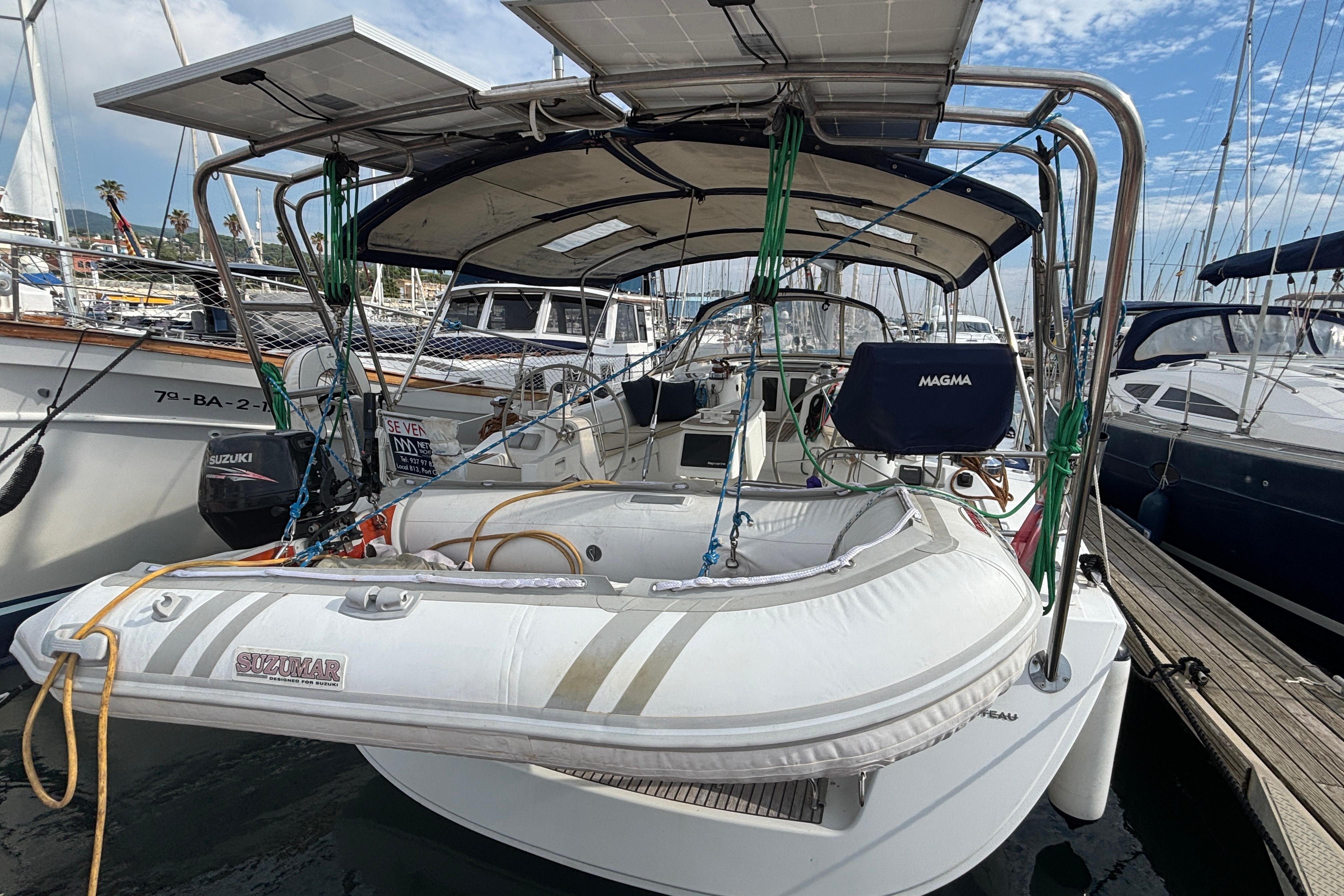 The Beneteau 49 represents an era of genuinely exceptional Beneteau sailing yachts. The profile and look of the hull and deck, designed by Berret/Racoupeau, were modernised while retaining the significant assets that have made Beneteau yachts admired for decades. Below decks, the boat drew excellent lines, featured brilliant woodwork, and used superb materials, elevating the Beneteau 49 to a new level of interior luxury. The owner bought a 2011 Suzuki engine with 15 hp and four cylinders for the dinghy. The engine impeller has been replaced, the turbocharger has been overhauled, and the anodes have been replaced. In April 2024, the antifouling was done in conjunction with propeller maintenance and anode replacement.