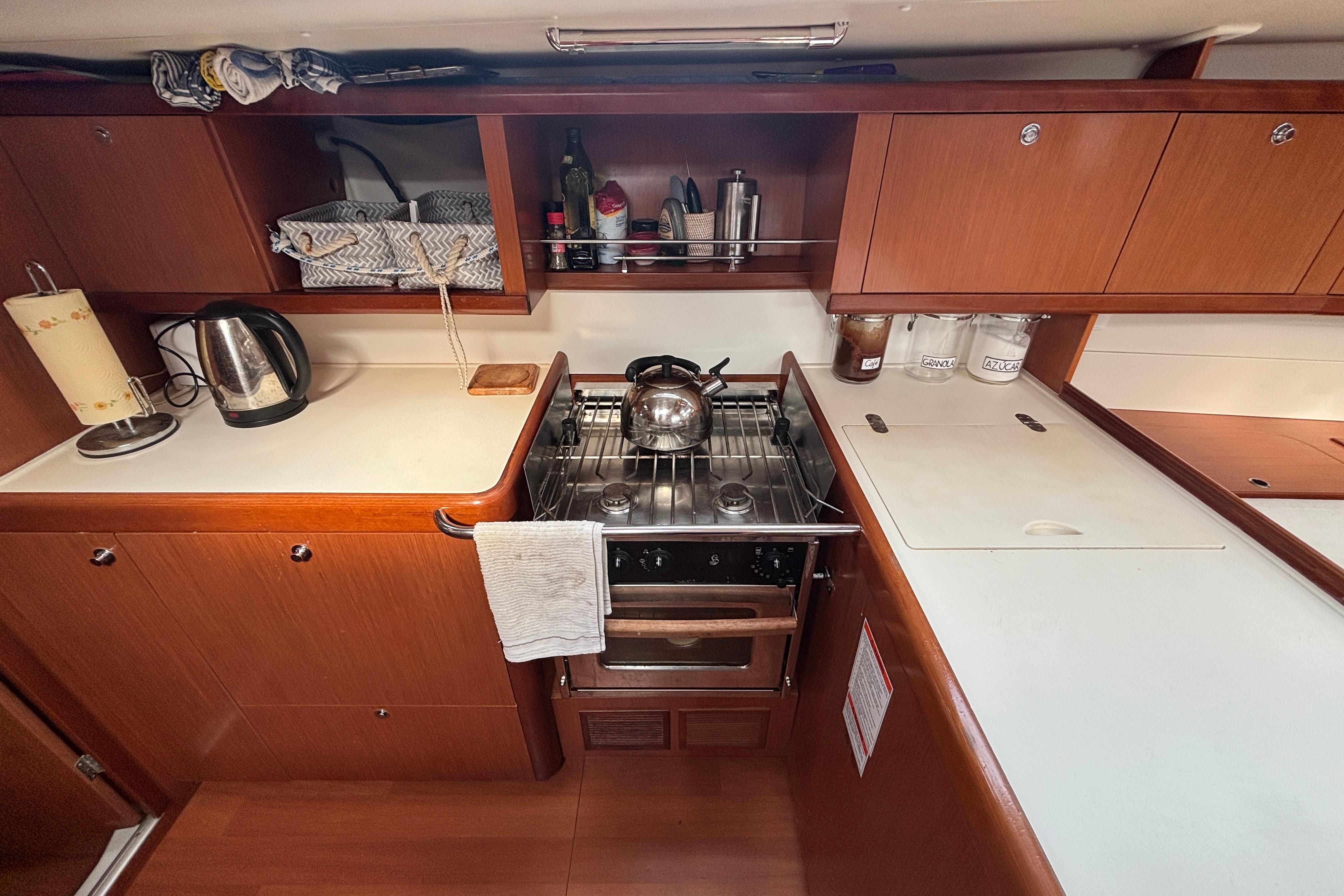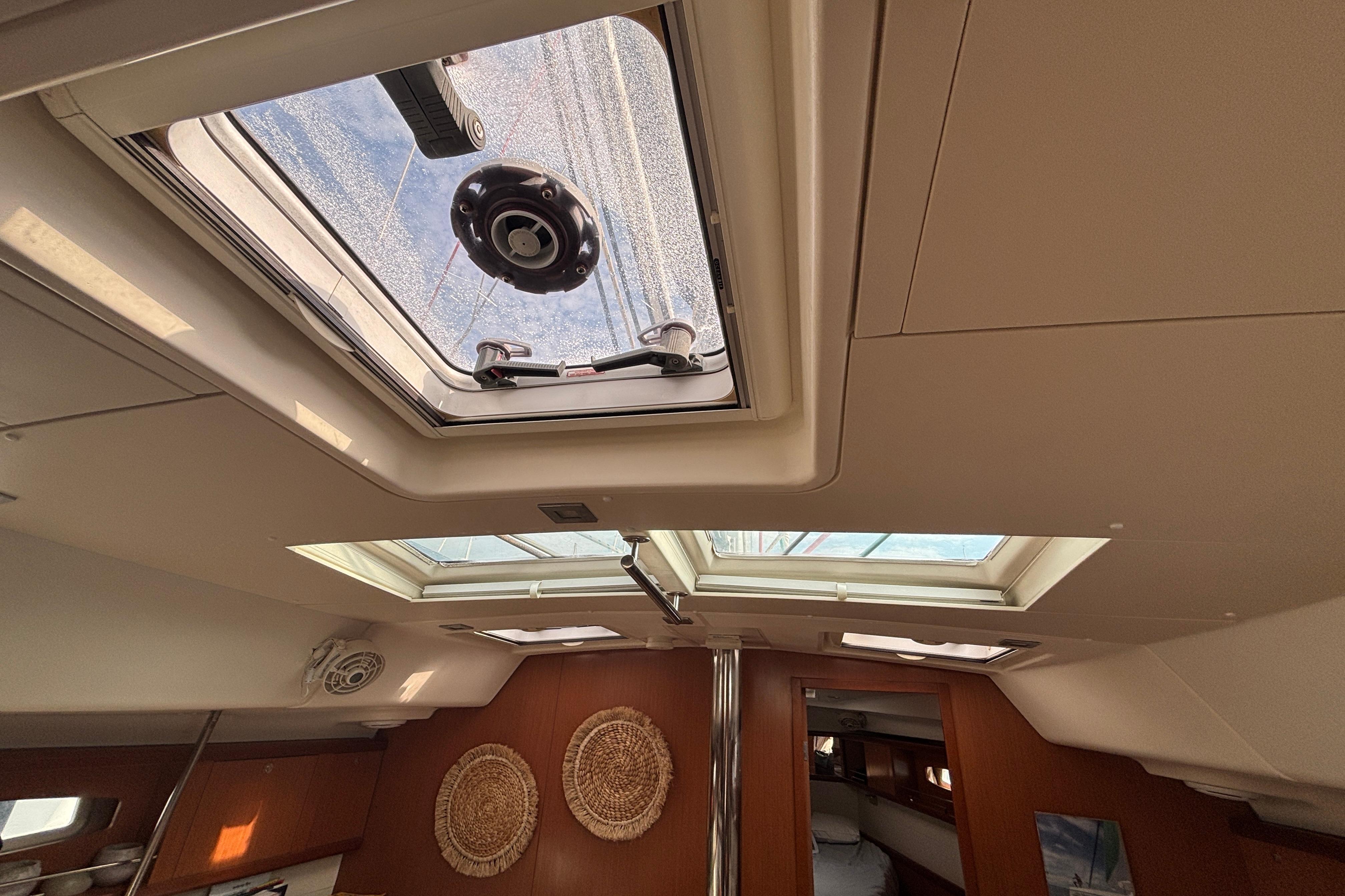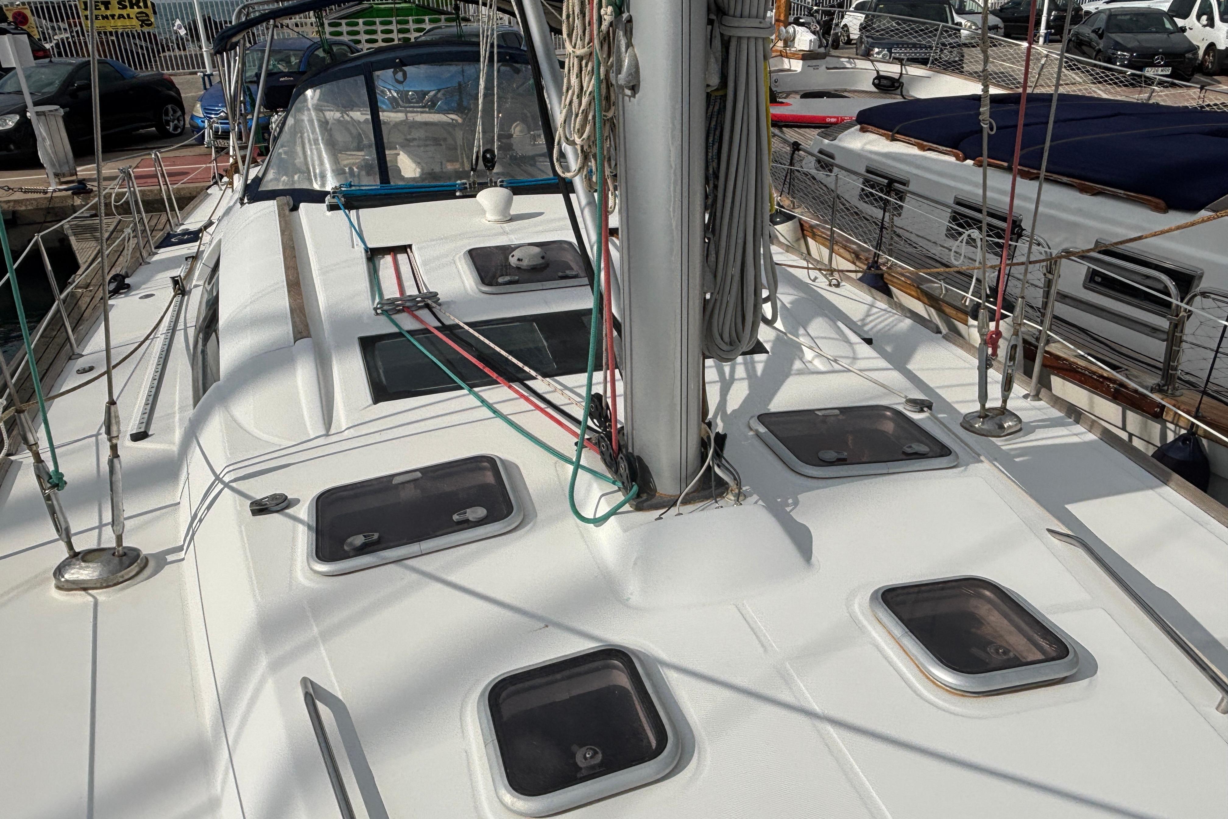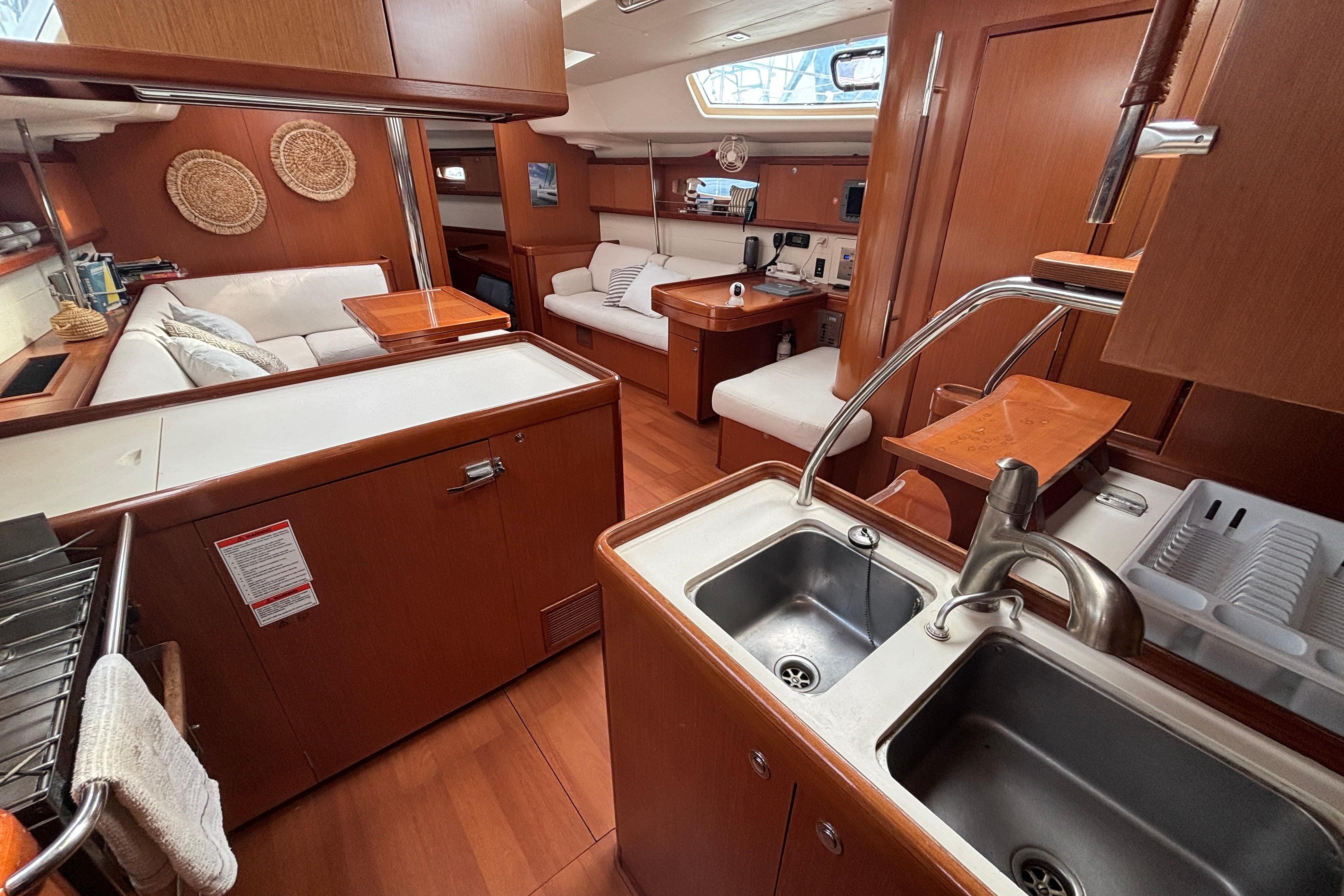 The Beneteau 49 represents an era of genuinely exceptional Beneteau sailing yachts. The profile and look of the hull and deck, designed by Berret/Racoupeau, were modernised while retaining the significant assets that have made Beneteau yachts admired for decades. Below decks, the boat drew excellent lines, featured brilliant woodwork, and used superb materials, elevating the Beneteau 49 to a new level of interior luxury. The owner bought a 2011 Suzuki engine with 15 hp and four cylinders for the dinghy. The engine impeller has been replaced, the turbocharger has been overhauled, and the anodes have been replaced. In April 2024, the antifouling was done in conjunction with propeller maintenance and anode replacement.